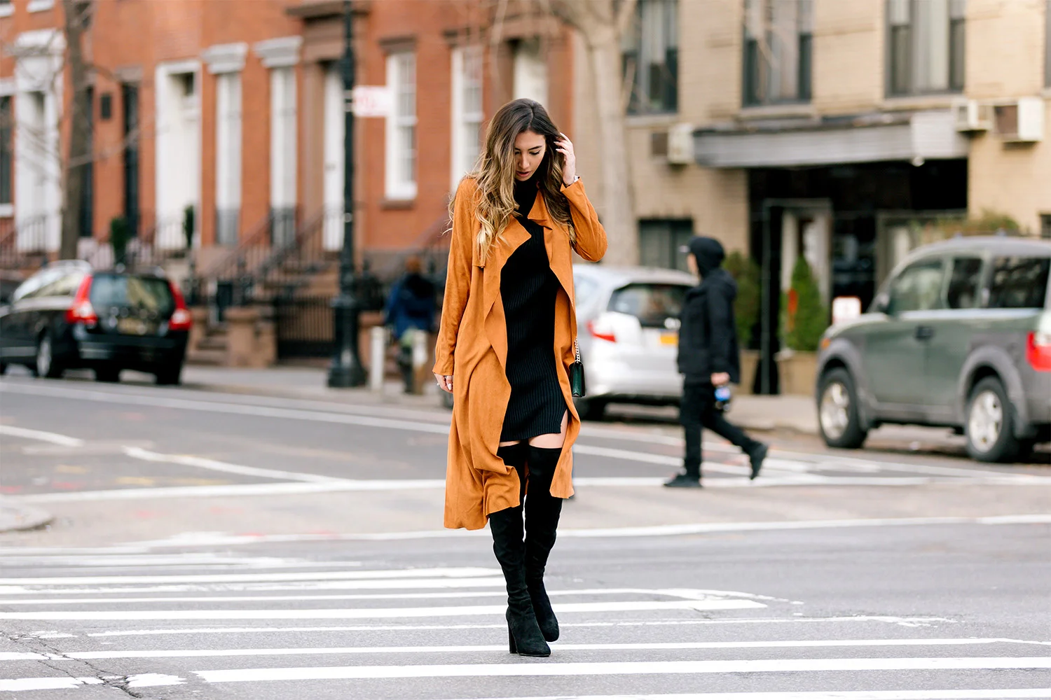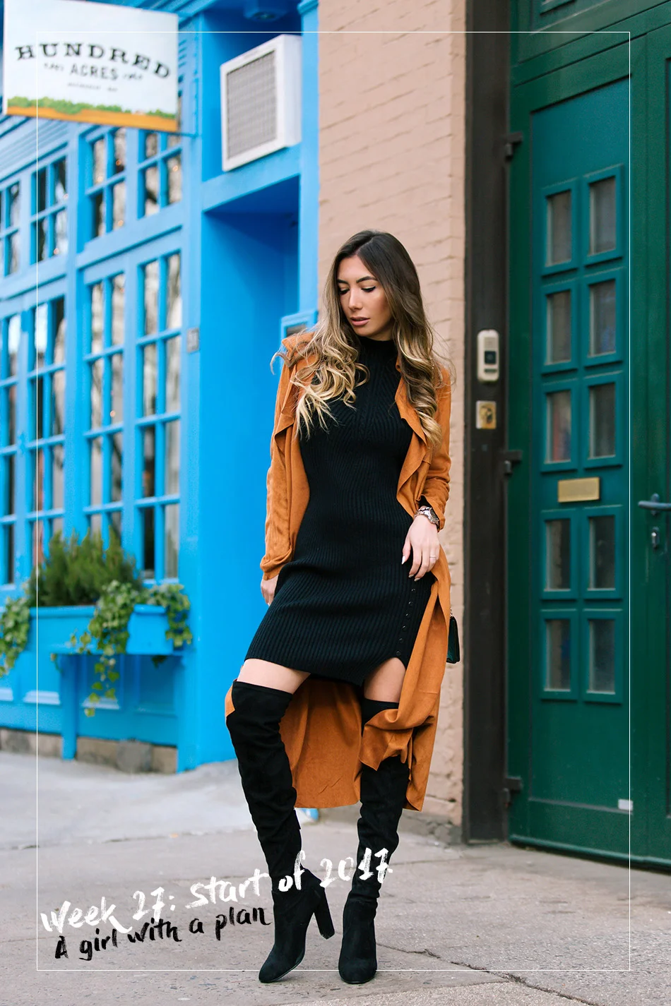 Coat - MakeMeChic | Black Dress - SammyDress | Boots - Steve Madden | Bag - Kate Spade