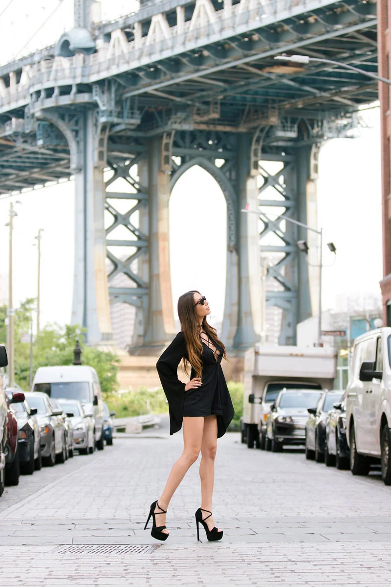 Am I talking off-topic too much today? :) Let me return to our Witches of Manhattan Week. For my last witchy look I decided to wear this extremely sexy, black romper with bell sleeves. Bell sleeves are such a classic attribute of any "witch outfit," that I feel that you don't even have to add anything else to make your dress or romper look more magic-infused. However, the revealing lace-up front of my romper from NastyGal (similar here) is an additional dramatic detail.