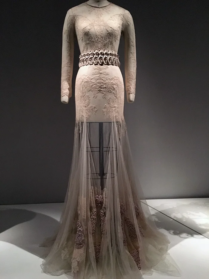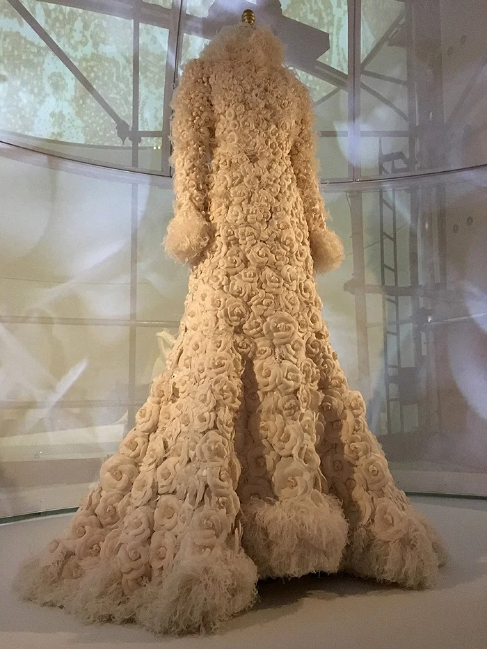 The centerpiece of the exhibition is this exquisite Chanel gown created by Karl Lagerfeld.