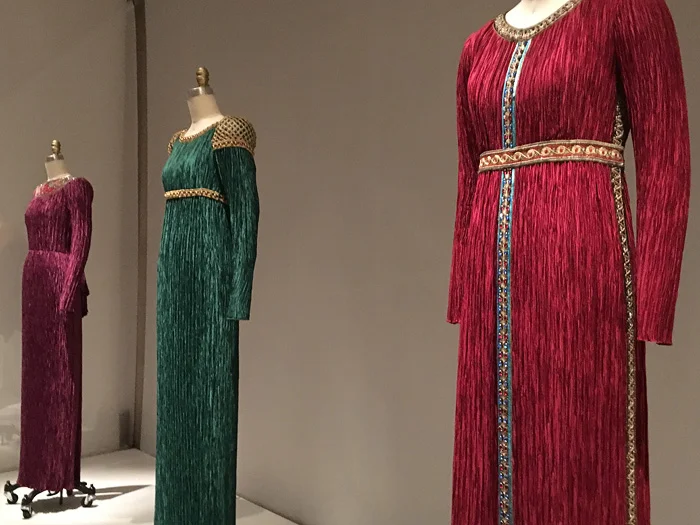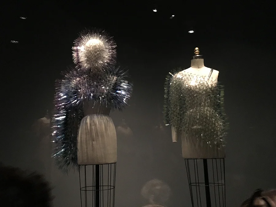 The exhibition is open at the Met Fifth Avenue through August 14, and I strongly recommend you see it. From the moment you step in you will feel a grandness and sacredness of the place, the kind that you experience in lavish medieval cathedrals or mosques. The circular exhibition space beckons us to look into its numerous alcoves with couture creations which are placed on pedestals like sculptures of Saints. The dimly lit museum wing is haunted by beautiful soul-reaching melodies. Only the fashion artifacts are magically lit, attracting your gaze.