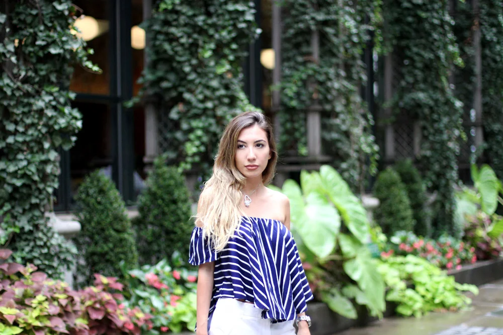 I wore this pretty Rosegal off-the-shoulder top with white J.Crew shorts to the park to meet up with my friend Agnes, who also took these photos of me (thank you, girl!). This is my first package from Rosegal, but I am pleasantly surprised by how good quality the clothes are, considering they are AMAZINGLY affordable.