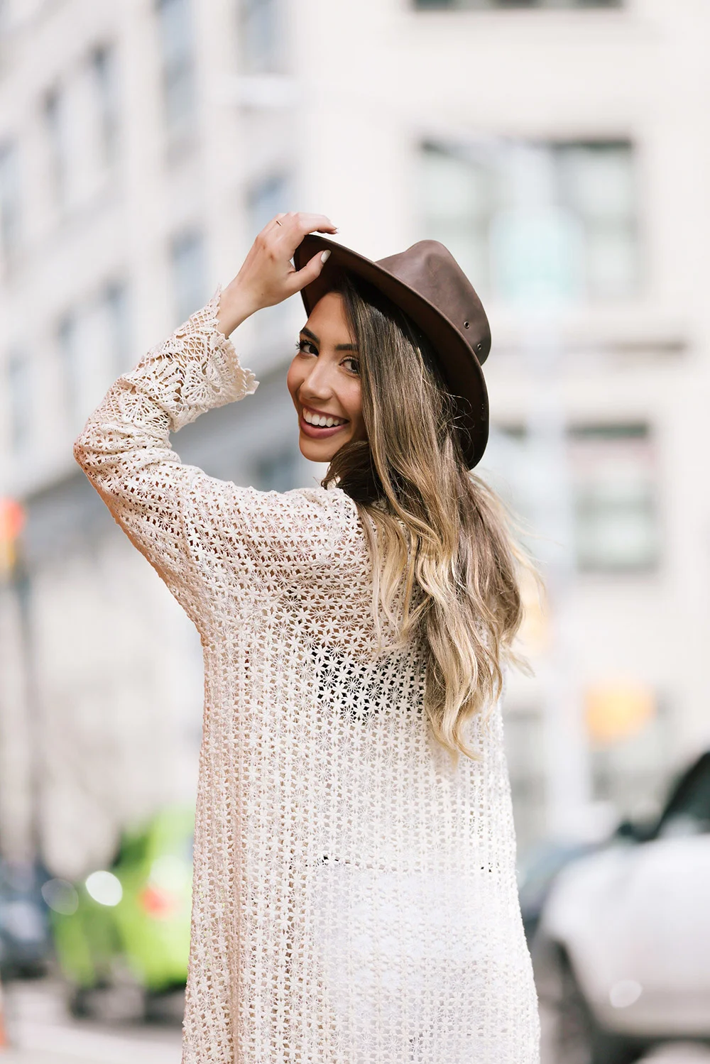 For this look, shot by my favorite NYC Photographer Dennis, I styled California Moonrise cardigan with white jeans, silky top with lacey details, added some black accessories and of course wore my cowboy hat that I seem to not take off since Coachella :)