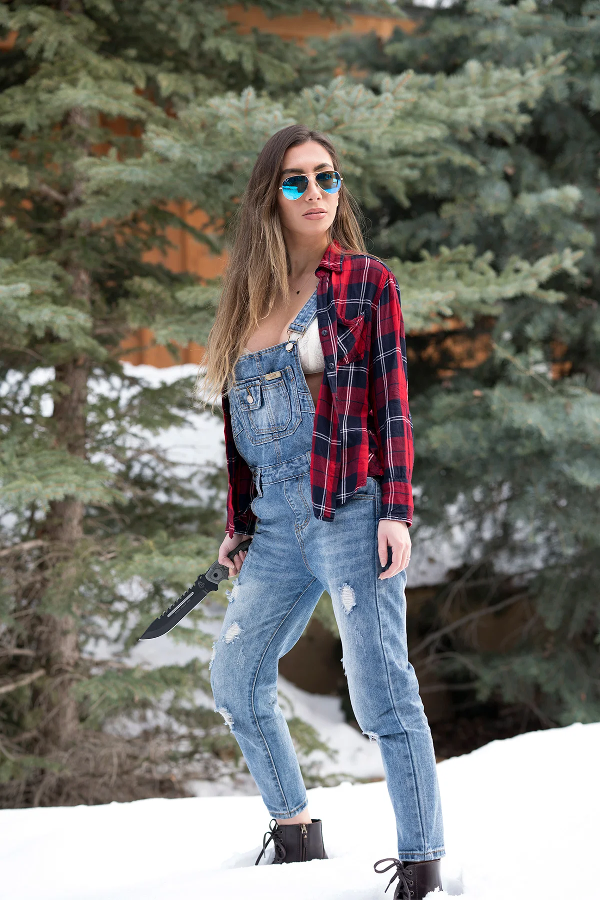 I had fun with this denim outfit and shot it for my upcoming pastiche of Walking Dead TV show. As you can see from the fluffy snow around me, I had to travel to Utah to get to "accessory" my look properly ;)